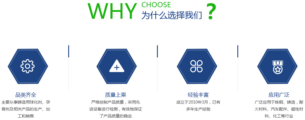 江蘇旦晨新材料科技有限公司、鎮(zhèn)江市勤成鑄造材料有限公司于2010年3月,成立于美麗的水上花園城市—江蘇揚(yáng)中,公司是一股份制企業(yè),注冊資本為200萬人民幣,主要從事鑄造用球化劑、孕育劑及相關(guān)產(chǎn)品的生產(chǎn)、加工和銷售。 公司引進(jìn)日本企業(yè)的生產(chǎn)管理模式,半自動(dòng)化生產(chǎn)方式。目前生產(chǎn)能力:球化劑250T/月、孕育劑300T/月、鑄造相關(guān)品200T/月。為嚴(yán)格控制產(chǎn)品質(zhì)量,公司采用國內(nèi)的ICP-AES等離子體發(fā)射光譜儀對(duì)采購原